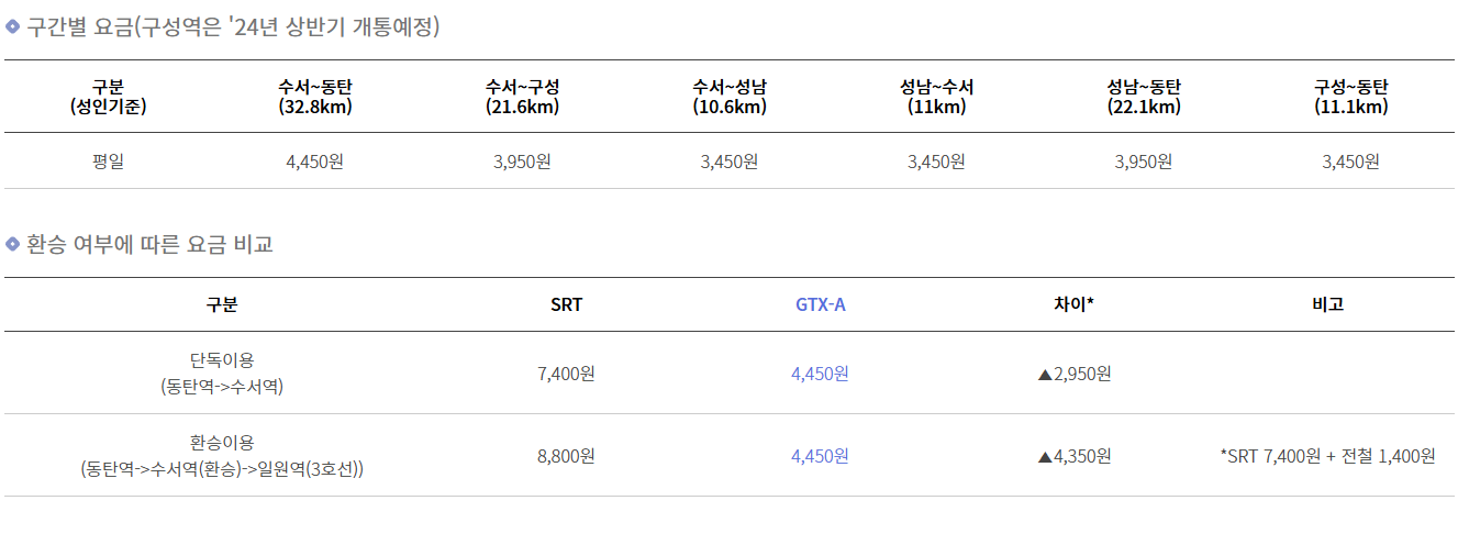 GTX-A 요금 및 운임 체계